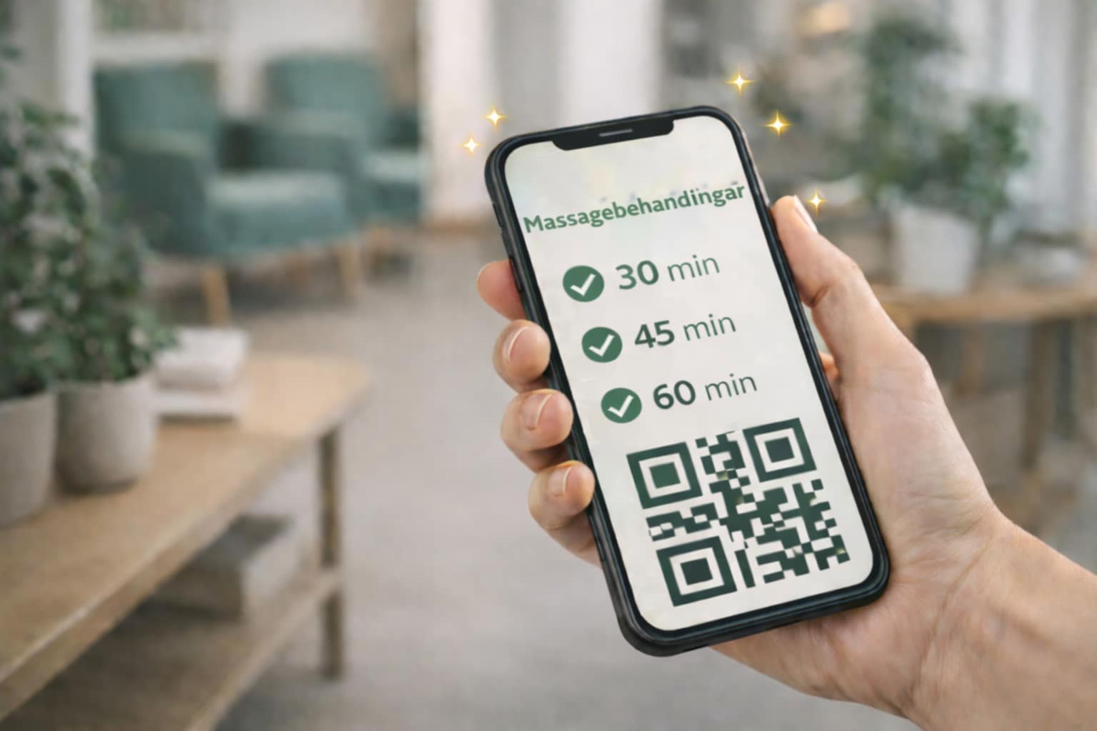 Betala på plats med ditt digitala friskvårdskort som skannas av terapeuten efter utförd behandling. Enkelt. Smidigt. Digitalt.